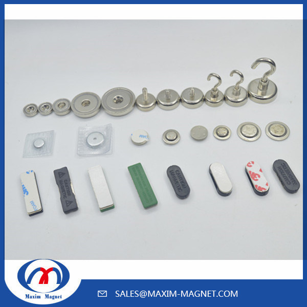 Los imanes del pote (también conocidos como capsulado o sosteniendo los imanes) se embalan en las piezas de acero (y/o algún magnético no ferroso aísle los materiales tales como de cobre amarillo, de aluminio) y ofrecen un agujero, un hilo interno, un jefe externo o un gancho desprendible en el centro del imán. Pueden estar cubiertos con el níquel, Zic o el color blanco, gris o negro de la demostración cubierta de goma.
